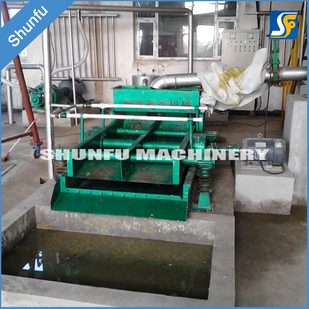 自洗式振框平篩的工作原理是:電動機帶動主軸使其進行高速回轉(zhuǎn),此時在主軸兩端的偏重輪產(chǎn)生很大的離心力,使懸吊在彈簧上的篩框作橢圓軌跡的振動。篩板表面鉆有Φ2~Φ12mm的篩孔或?qū)?.5~0.75mm的篩縫,以適應(yīng)不同漿料的篩選要求。在篩框底部聯(lián)接一個一定高度的氣封室,電機開始運轉(zhuǎn)后調(diào)節(jié)漿槽漿位至氣封室底部以上,使篩板位于漿槽的漿料液面以上,此時,當篩體作上下振動時,密封在氣封室內(nèi)的空氣會產(chǎn)生壓力脈動。當篩板向上運動時漿料通過篩孔浸入漿槽,這樣就使篩板進行連續(xù)的自清洗而不使篩板堵塞,既保持了篩板清潔通暢,又提高了篩選質(zhì)量和生產(chǎn)能力。